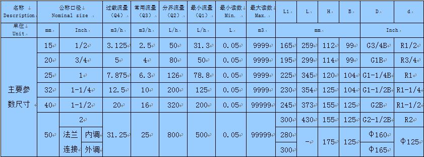 多流束旋翼濕式冷水表參數(shù)尺寸 SPECIFICATION AND OVERALL DIMENSIONS